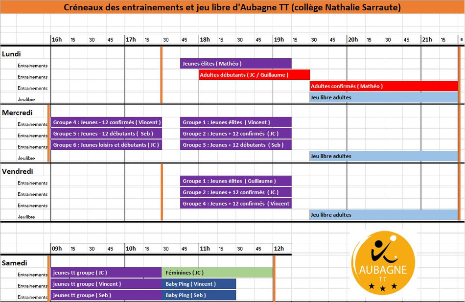 seuls les adultes participant aux compétitions sont autorisés à venir s'entrainer à partir de 17h30.